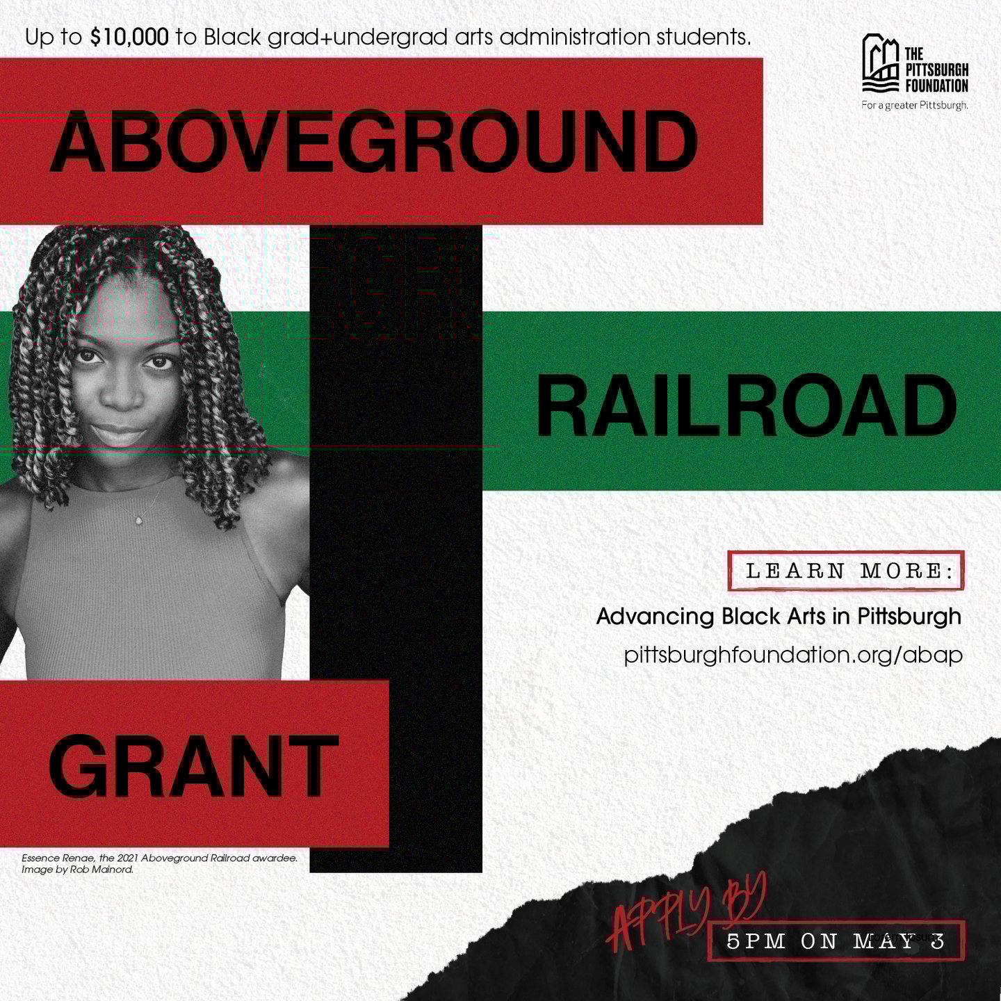 was created in 2020 in partnership with The Pittsburgh Foundation and The Heinz Endowment in Pittsburgh, PA. This grant program supports three Pittsburgh-based Black students currently pursuing a degree in higher education towards a career in arts administration with a $10,000 unrestricted award. This funding stream will consider racial and gender equity explicitly, with a strong preference towards students identifying as Black women.