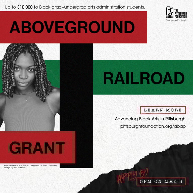 The ABOVEGROUND RAILROAD is generously funded by individual donors, The NC Arts Council, The Pittsburgh Foundation and The Heinz Endowment.